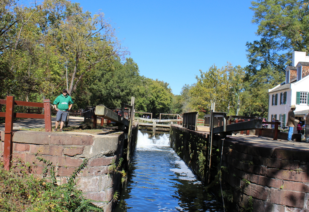 Here's a view of a section of the adjacent C&O Canal with the canal boat restored by the Park Service visible at the far end.